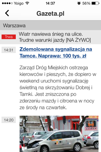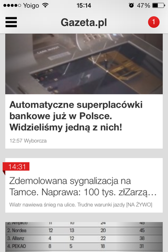 W Gazeta.pl LIVE postawiono nacisk na jak najszybsze prezentowanie ważnych informacji. Dlatego też aplikacja wyświetla nie tylko zwykłe newsy, ale również relacje na żywo oraz posiada moduł powiadamiania o ważnych wydarzeniach. Gazeta.pl LIVE dobrze radzi sobie z obsługą zdjęć i wideo, a nawet pokazuje komentarze. Niestety, by dodać własny, należy przejść do wersji mobilnej artykułu.
